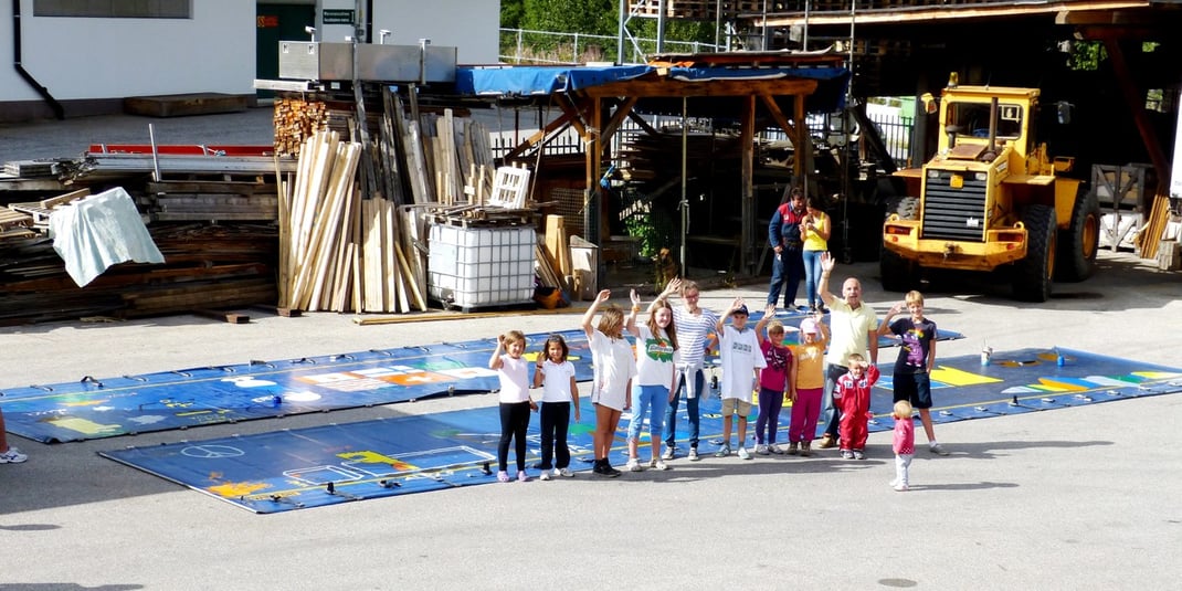 The summer nursery from Toblach visited the company Rizzo Trans GmbH on 20.08.2013. A canvas was designed creatively.
