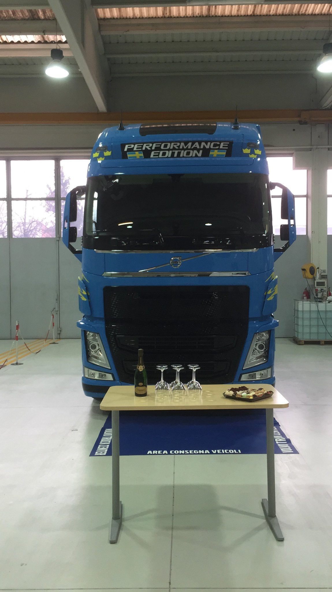 In December 2016, Fortunato Rizzo was invited to a VOLVO event. It was Sweden-themed, as it was called "Saint Lucia event". A very important guest, crownprincess Victoria of Sweden, was present. The next day, Fortunato had the chance to speak to Victoria, which was a great honor for him, as he loves Sweden. At the Italian VOLVO headquarters in Zingonia, the crownprincess got on the new Volvo Performance. That truck was sold to Rizzo Trans in January of 2017. That's why this truck's nickname is "the princess".
